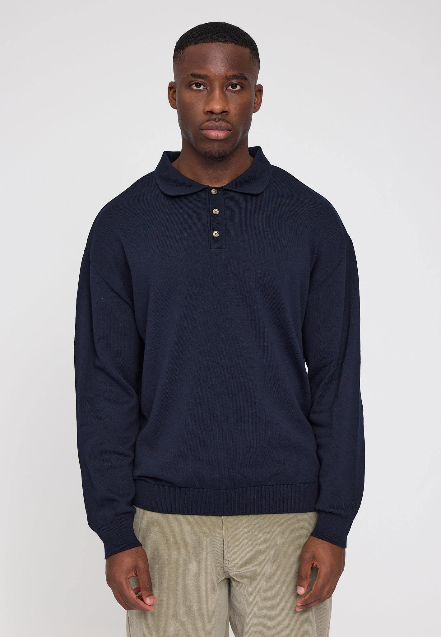 Der Knit Polo Jumper in Indigo kombiniert klassischen Polostil mit modernem Strickdesign. Gefertigt aus weicher Bio-Baumwolle bietet er angenehmen Tragekomfort und eine nachhaltige Materialqualität. Der Kragen mit Knopfleiste verleiht dem Pullover eine strukturierte, zeitlose Optik, während die normale Passform für vielseitige Kombinationsmöglichkeiten sorgt. Mit langen Ärmeln und feiner Strickstruktur ist er ein stilvoller Begleiter für Alltag und Freizeit – schlicht, bequem und verantwortungsbewusst gefertigt.