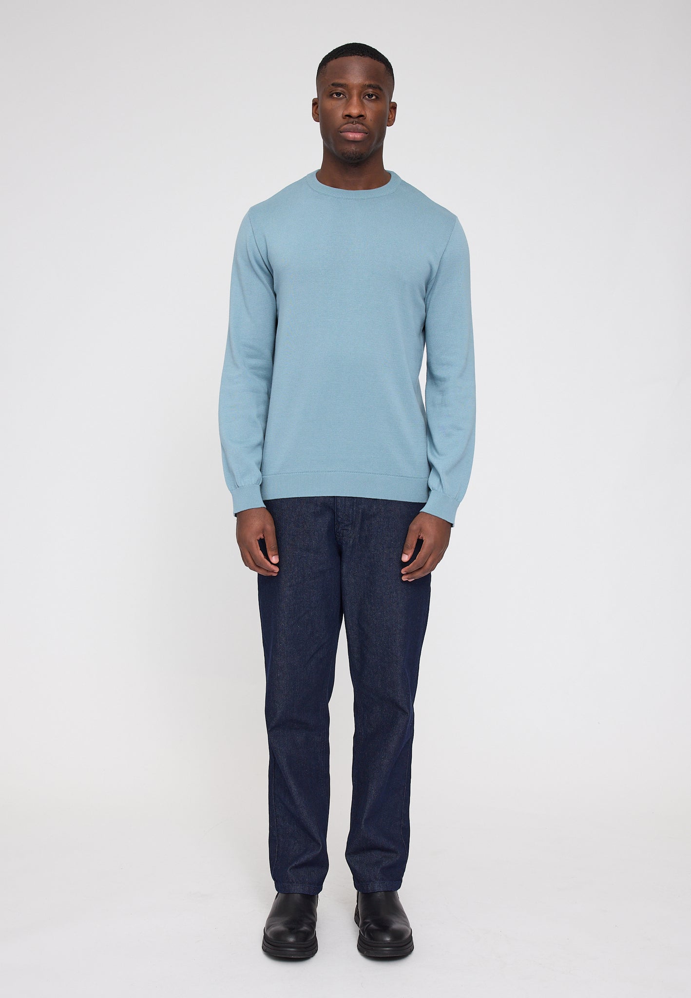 Fine Knit Crew Neck Jumper - Smoke Blue