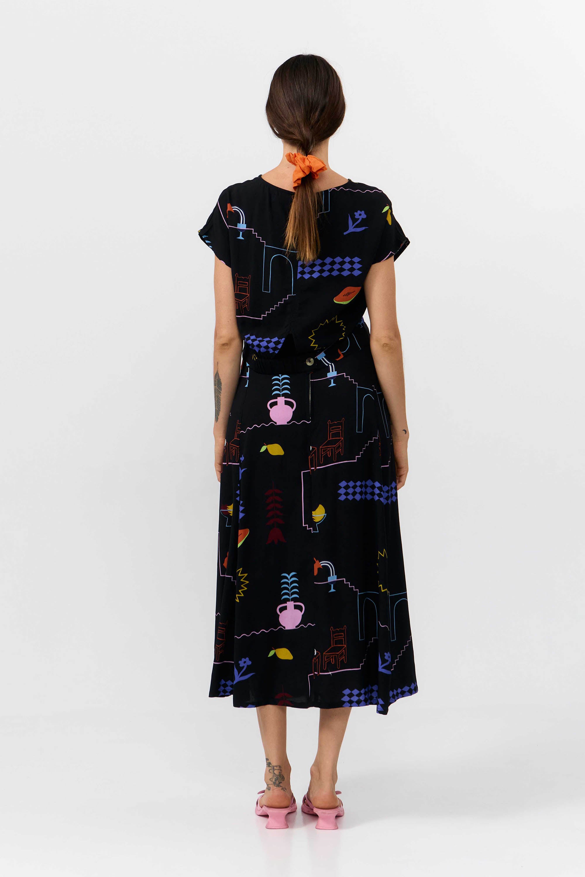 Der BORNEO Rock ist ein stilvoller Midirock aus fließender Viskose, der durch seinen modernen Print und hohen Tragekomfort überzeugt. Die leichte, weiche Qualität sorgt für ein angenehmes Gefühl auf der Haut und verleiht dem Rock eine elegante, bewegliche Silhouette.