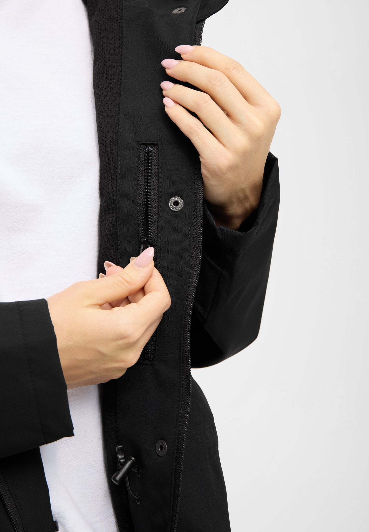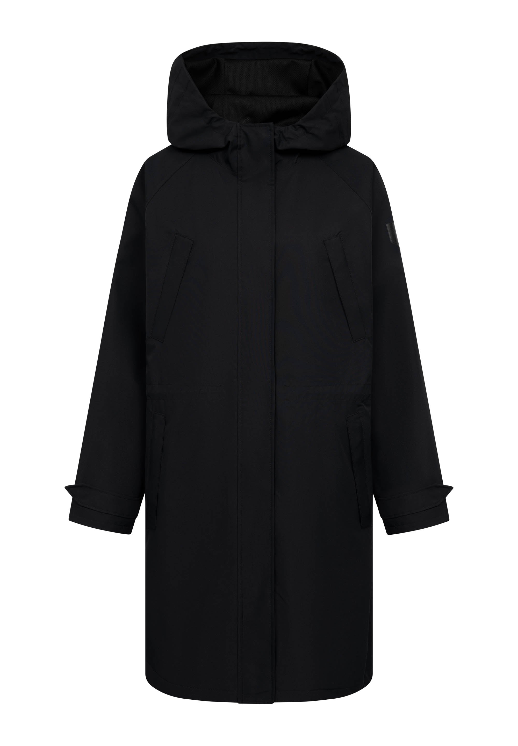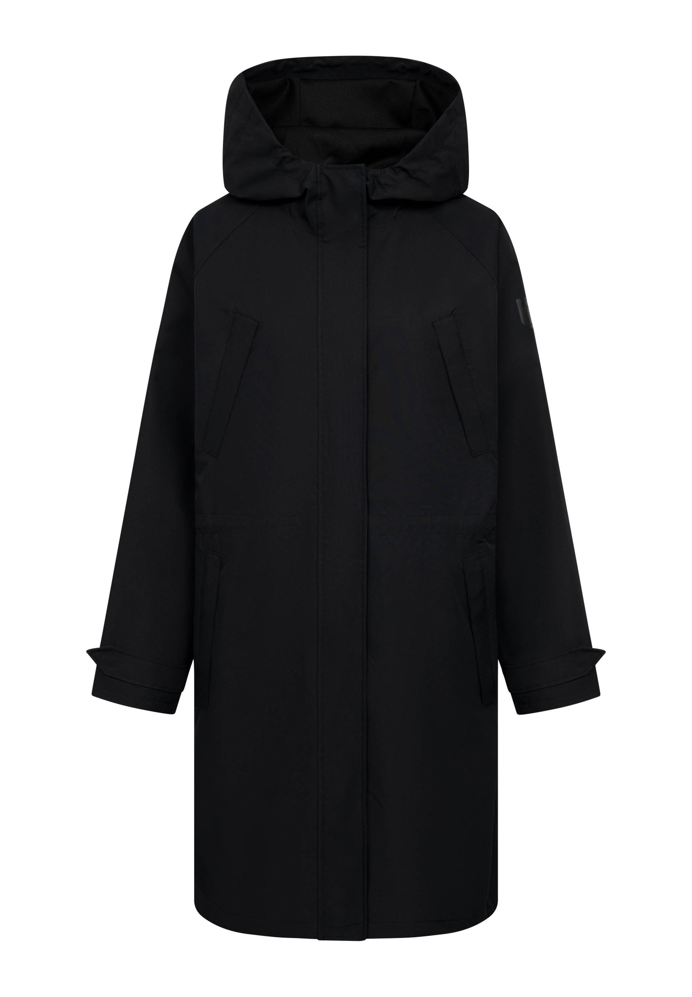 Die Deutby Regenjacke für Damen in Jet Black von Derbe vereint funktionale Performance mit modernem, urbanem Design. Hergestellt aus hochwertigem Material mit 10.000 mm Wassersäule und extra starker TPU-Beschichtung, schützt die Jacke zuverlässig vor Regen und Wind, während die atmungsaktive Struktur (3.000 g/m²/24h) für angenehmes Trageklima sorgt. Getapete Nähte und ein Mesh-Futter erhöhen Komfort und Langlebigkeit, während der Oversize-Parka-Schnitt mit Raglanärmeln, hinten längerem Saum und verstellbarer Taille für eine moderne Silhouette sorgt. Praktische Details wie Front- und Brusttaschen, Innentasche mit Reißverschluss, weitenverstellbare Kapuze und Ärmelabschlüsse sowie der Zwei-Wege-Reißverschluss mit verdeckter Druckknopfleiste und Kinnschutz verbinden Komfort mit Stil. Abgerundet wird das Design durch ein Brand-Logo-Patch am oberen Ärmel, wodurch die Deutby Regenjacke sowohl funktional als auch modisch überzeugt.