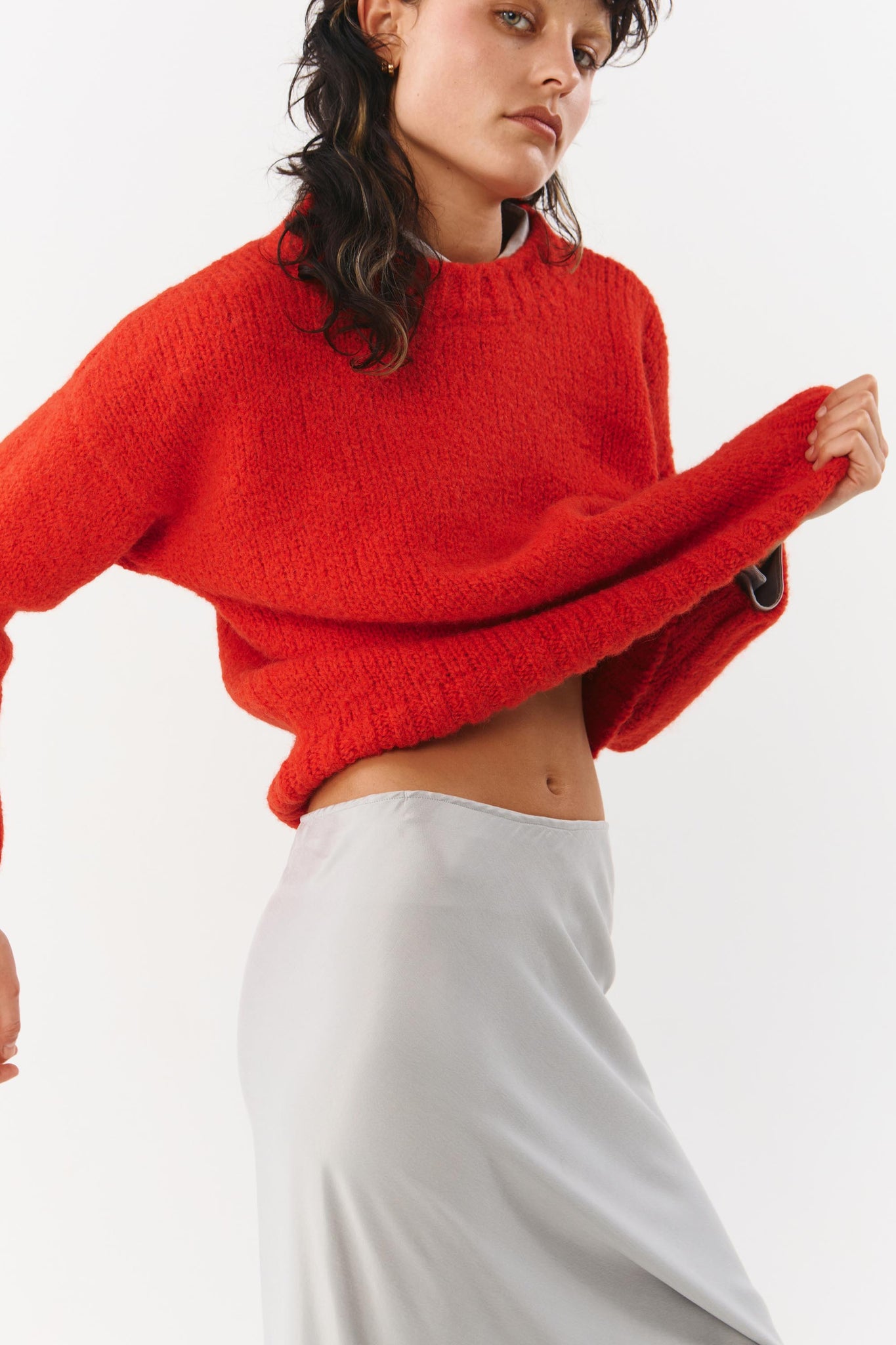 Der Pia Rock verkörpert eine stille Form von Eleganz, die im Detail und in der Bewegung liegt. Gefertigt aus einem fließenden Cupro-Gewebe, das sich mit sanftem Glanz und fast flüssiger Drapierung um die Silhouette legt, entsteht ein Look, der bewusst einfach und doch spürbar raffiniert ist. Die mittellange A-Linienform schmeichelt durch ihre klar definierte Struktur, ohne aufzutragen, und sitzt natürlich an der Taille – ein Schnitt, der Bewegungsfreiheit und Präsenz mühelos vereint. Der seitlich versteckte Reißverschluss sorgt für eine glatte Linienführung und lässt die minimalistische Ästhetik des Rocks für sich sprechen. Der Pia Rock ist kein lautes Statement, sondern ein zurückhaltender Begleiter mit Haltung – tragbar von morgens bis abends, allein oder im Kontrast. Besonders spannungsvoll wirkt er kombiniert mit der Loa Strickjacke, deren strukturierte Oberfläche einen gezielten Gegensatz zum fließenden Charakter des Rocks bildet. So entsteht ein Gesamtbild, das leise wirkt, aber nie übersehen wird.