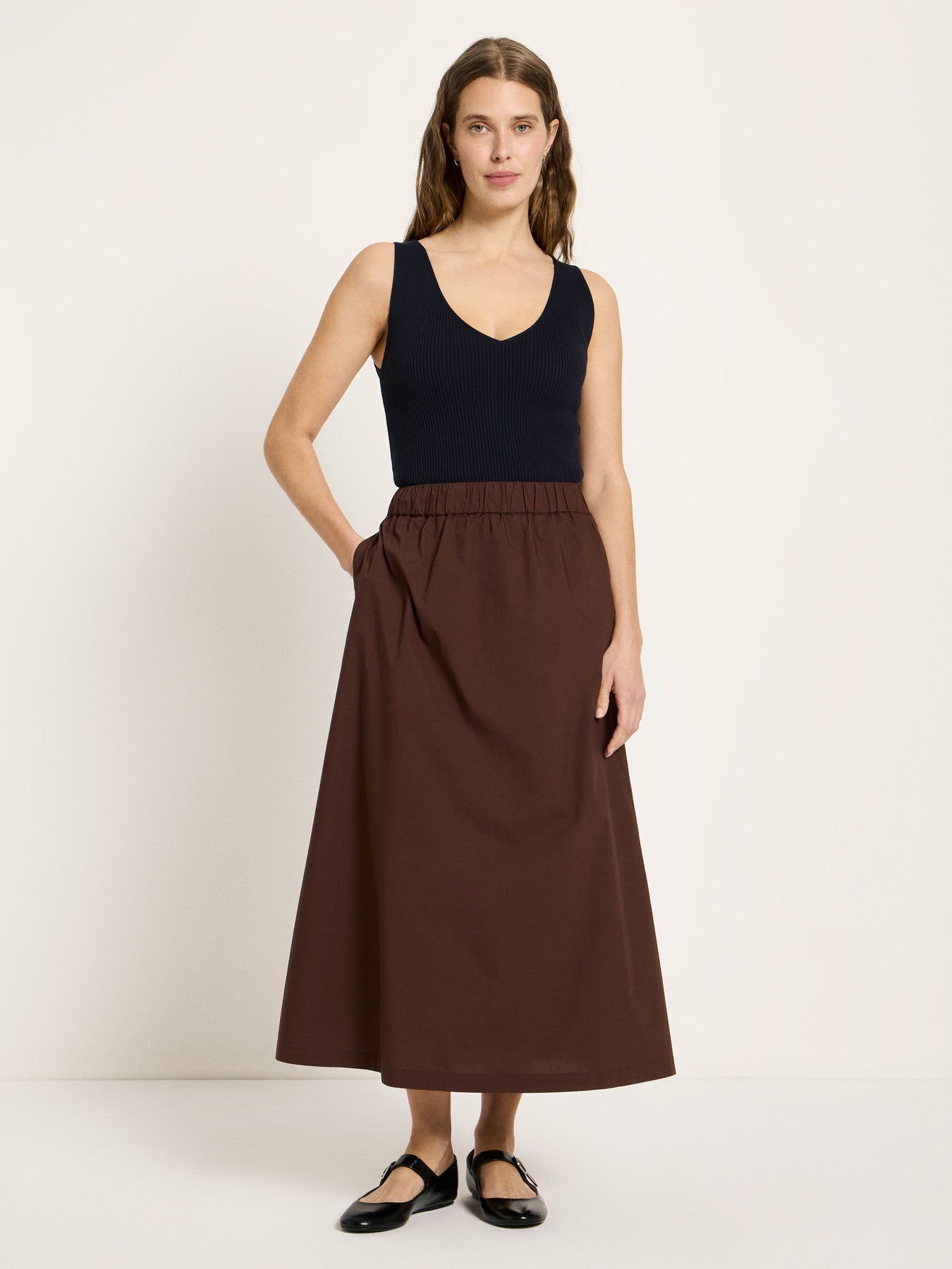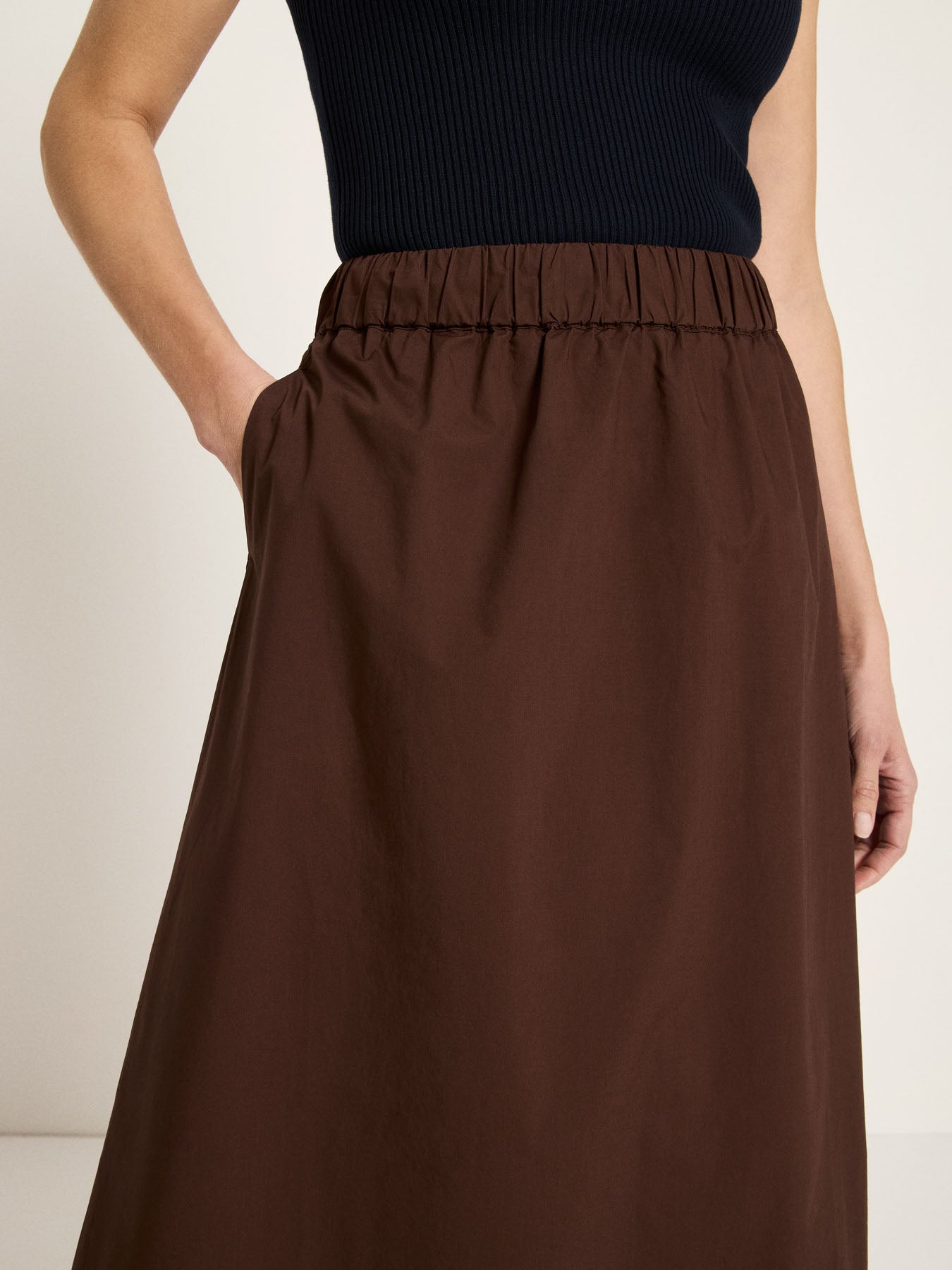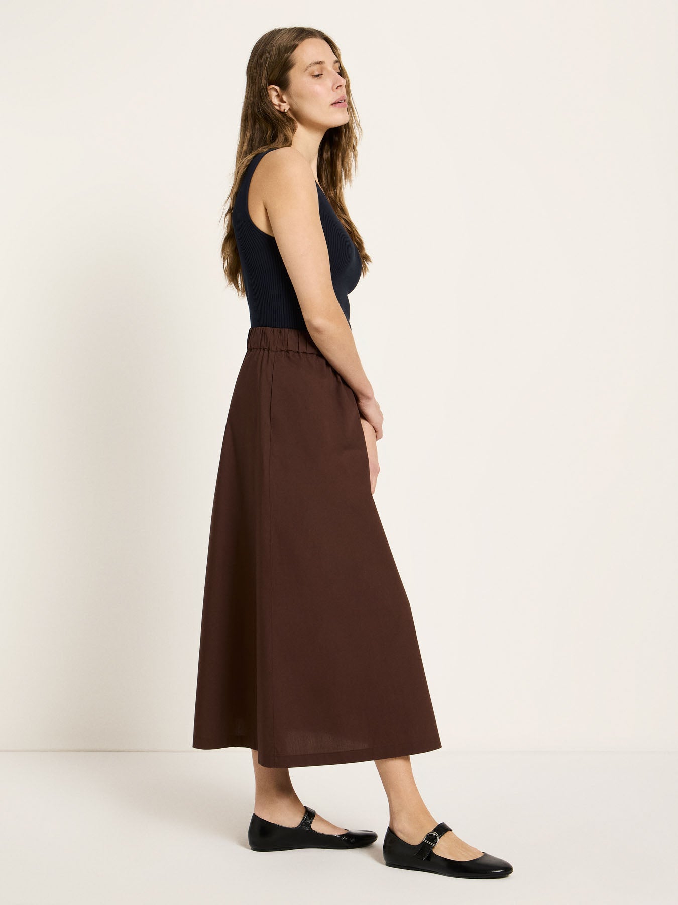 Dieser Midirock aus GOTS-zertifizierter Bio-Baumwolle ist ein vielseitiges Essential, das Ruhe, Eleganz und nachhaltige Qualität in jede Garderobe bringt. Das natürliche Material fühlt sich angenehm weich auf der Haut an und sorgt für ein komfortables, hochwertiges Tragegefühl – ideal für Tage, an denen ein unkomplizierter, aber stilvoller Look gefragt ist.