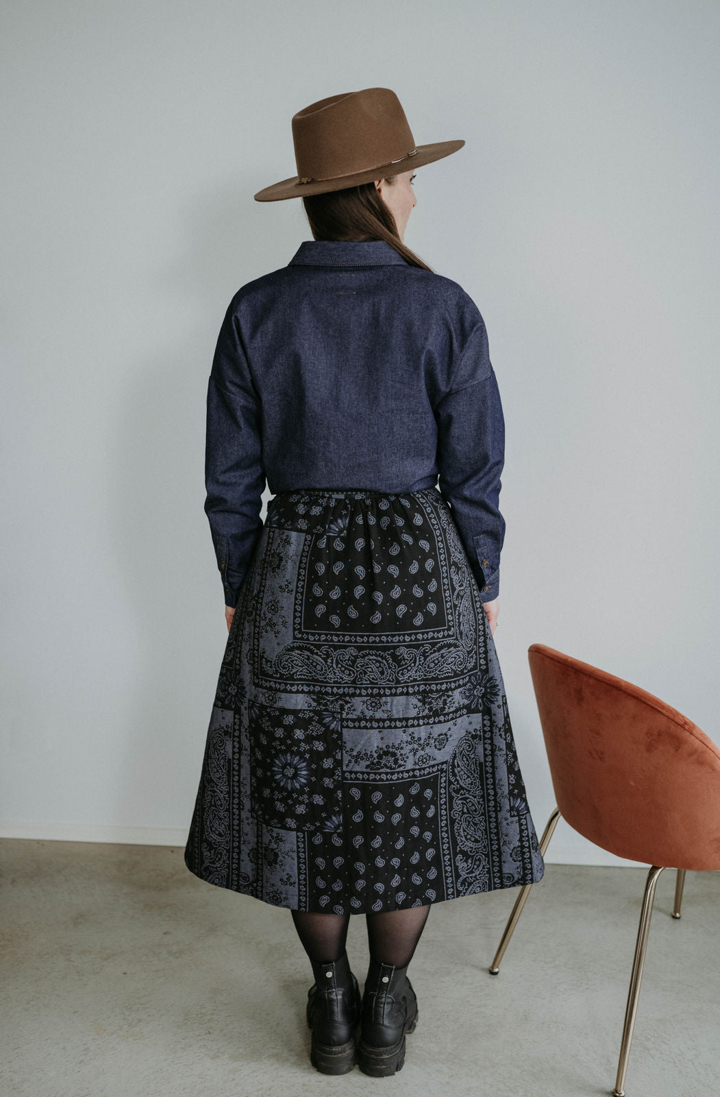 Besonders schön: Durch die Midilänge wirkt der Rock elegant, bleibt aber durch den entspannten Schnitt und das Patchwork-Muster gleichzeitig alltagstauglich. Mit Boots entsteht ein lässiger Boho-Look, während er mit Absatzschuhen sofort festlich wirkt.
