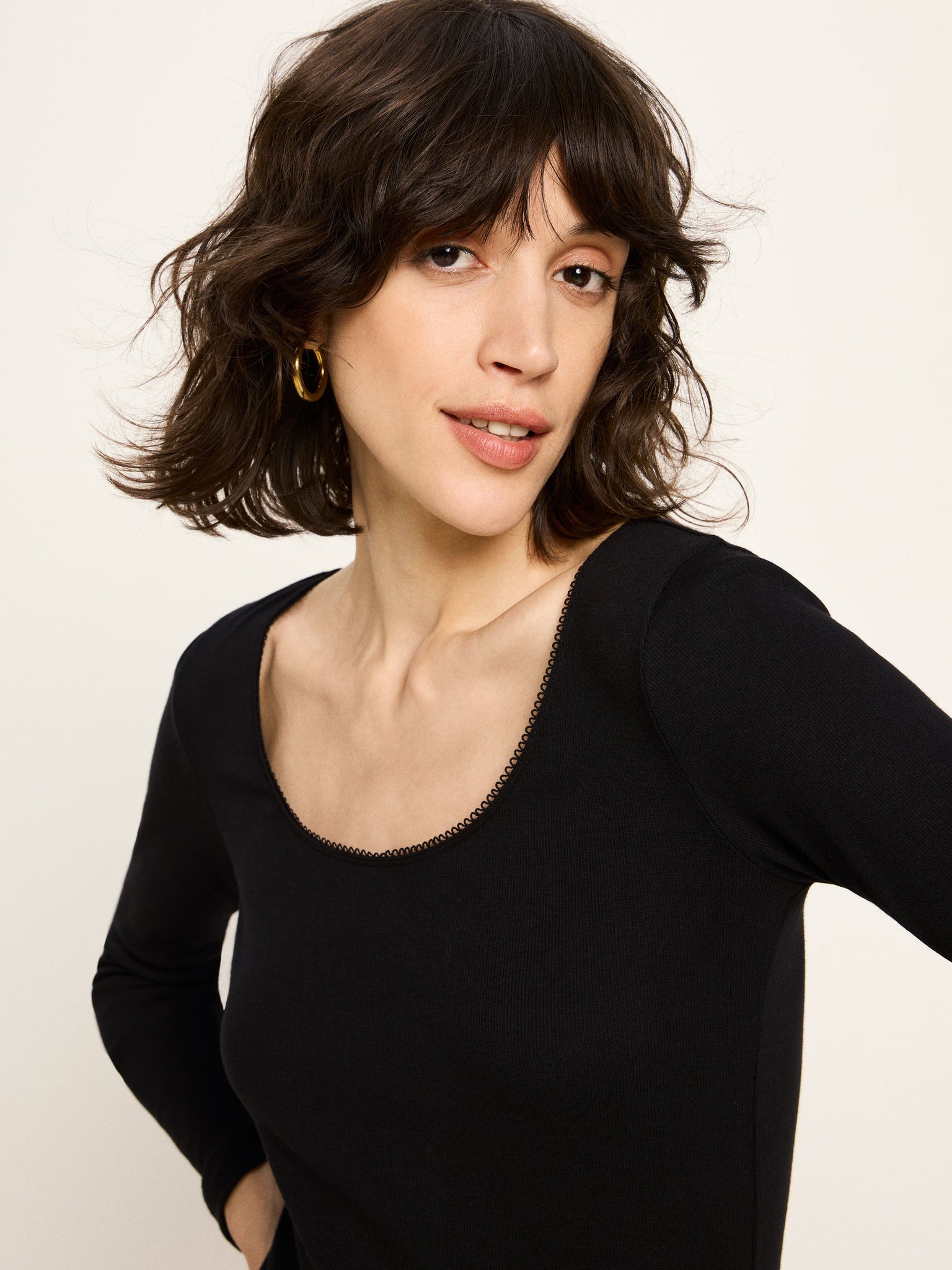 Ein vielseitiges Basic mit besonderem Detail – perfekt für Alltag, Layering oder als feines Essential unter Blazer & Cardigan.
