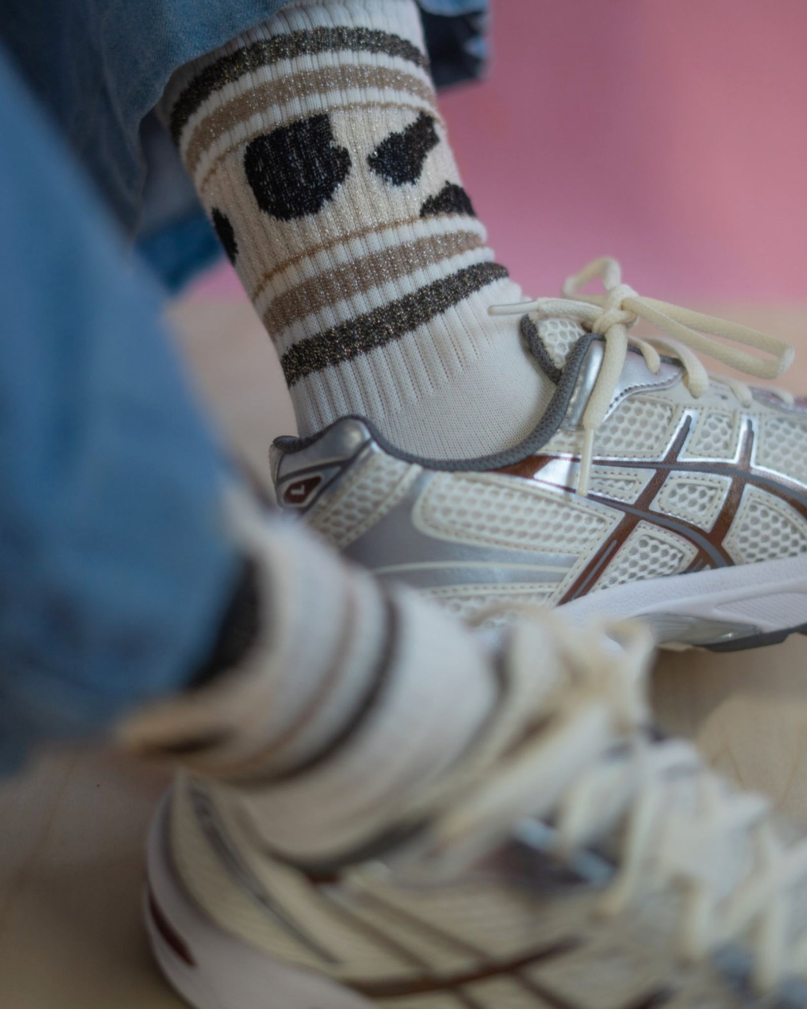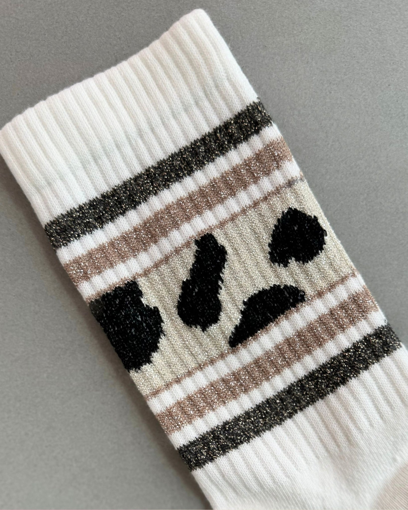 Die SPORTY GLITTER COW Socks kombinieren den klassischen Animal-Look mit einem modischen Glitzer-Finish – ein Statement mit Augenzwinkern und garantiertem WOW-Effekt.