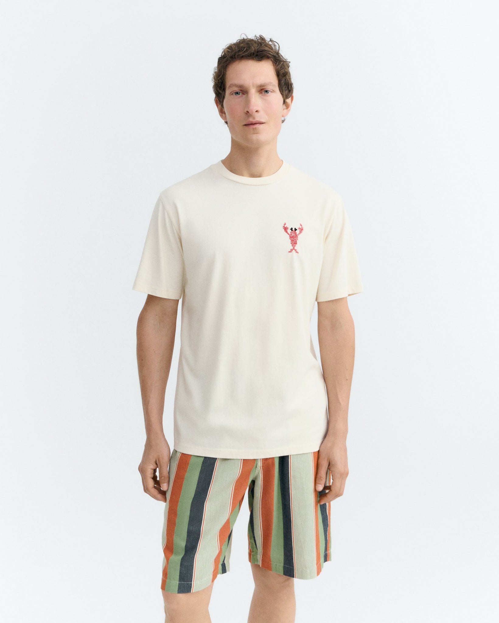 Ein besonderes Highlight ist die dezente Lobster-Stickerei auf der Brust, die dem Tee einen verspielten und individuellen Akzent verleiht. Entworfen in Barcelona, verbindet dieses T-Shirt urbanen Stil mit unkomplizierter Alltagstauglichkeit und lässt sich vielseitig kombinieren – ideal für casual Looks oder entspanntes Layering.