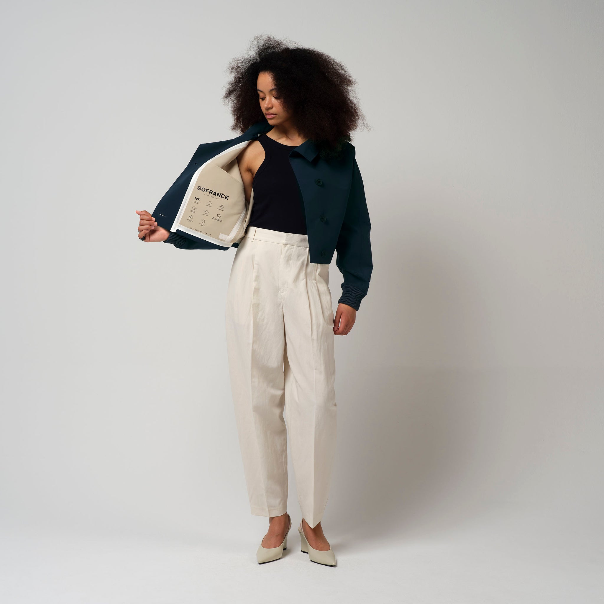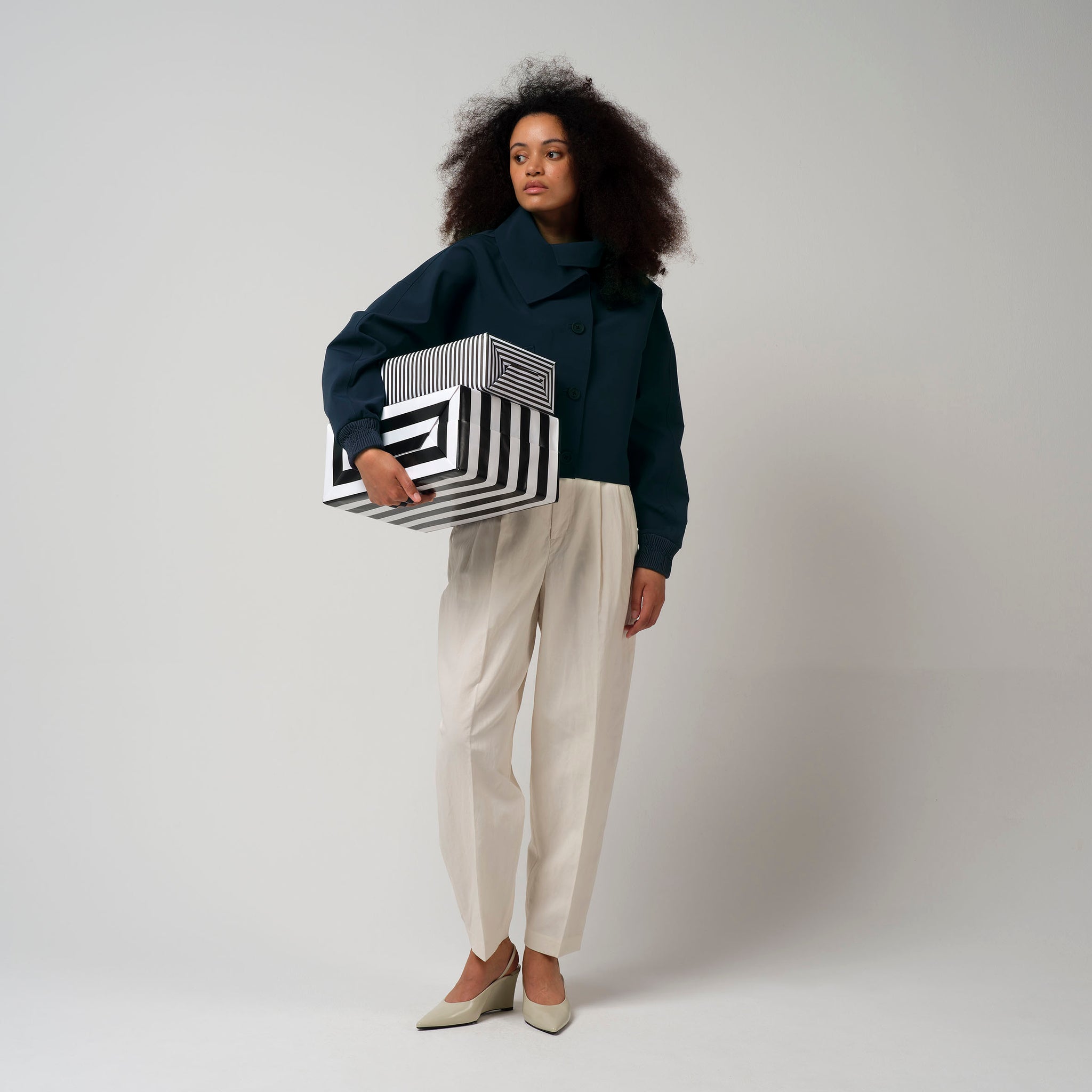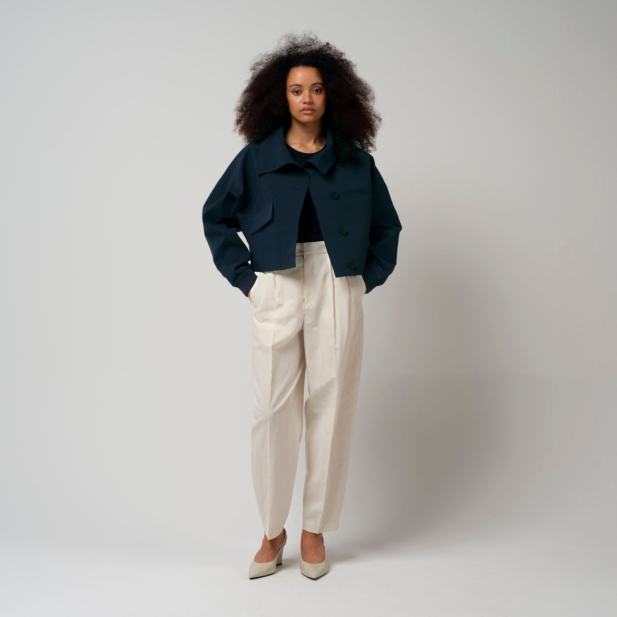 Die BRONTE wasserdichte kurze Jacke vereint modernes Design mit zuverlässiger Funktionalität und ist die perfekte Wahl für stilbewusste Tage bei wechselhaftem Wetter. Der markante asymmetrische Kragen und die breiten Ärmel verleihen der Jacke eine interessante, fast skulpturale Silhouette, während die zeitlose Farbgebung sie zu einem vielseitig kombinierbaren Klassiker macht. BRONTE beweist, dass sich modischer Anspruch und wetterfeste Performance ideal ergänzen.