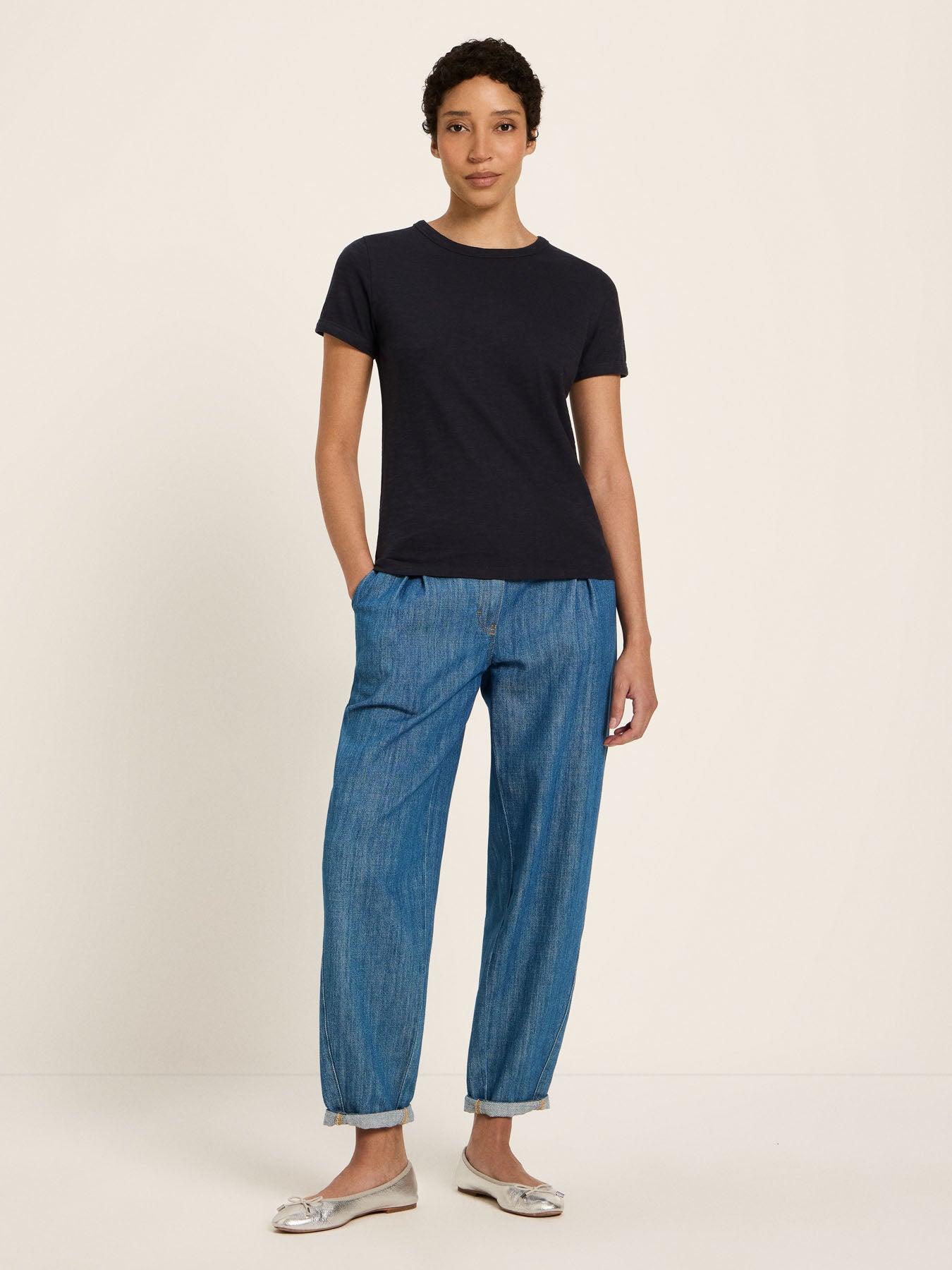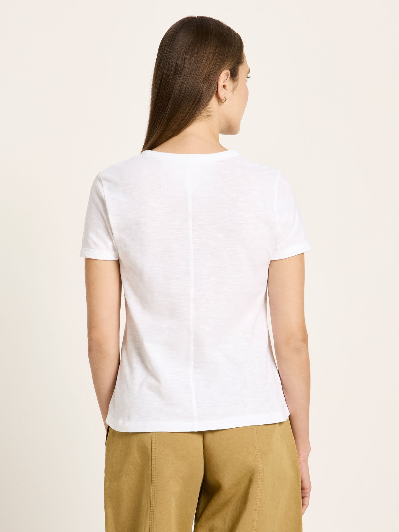 Dieses Kurzarmshirt aus GOTS-zertifizierter Bio-Baumwolle ist ein zeitloses Essential für jeden Tag. Die hochwertige, nachhaltig angebaute Baumwolle überzeugt mit einer angenehm weichen Haptik und atmungsaktiven Eigenschaften, die für ein rundum komfortables Tragegefühl sorgen. Die klare, reduzierte Form macht das Shirt zu einem vielseitigen Basic für eine bewusste Garderobe.