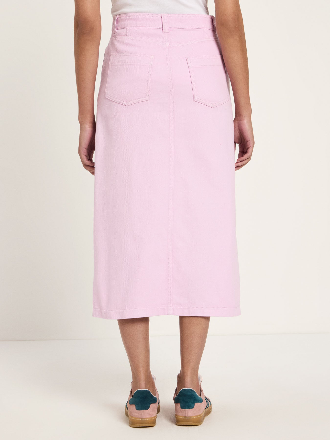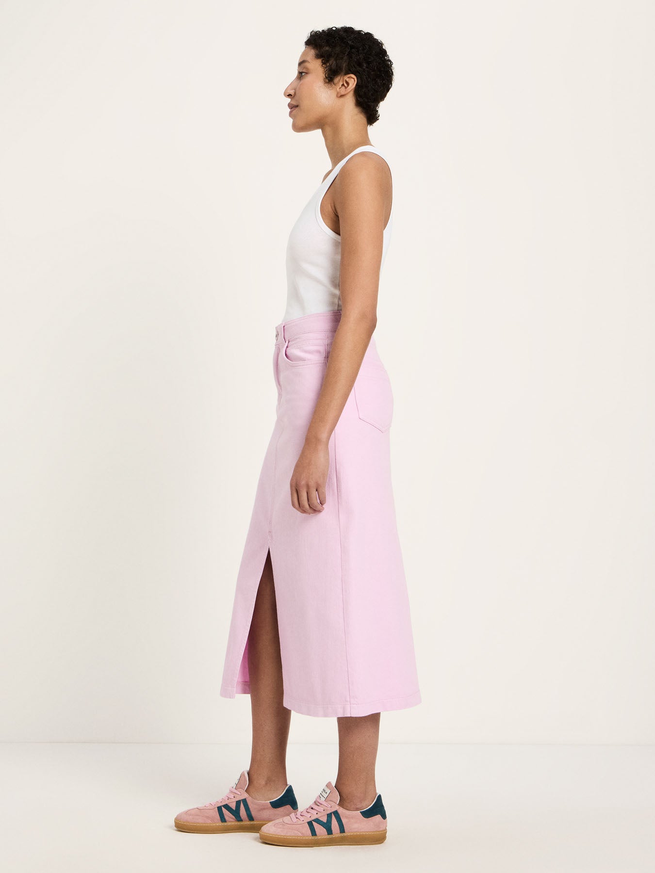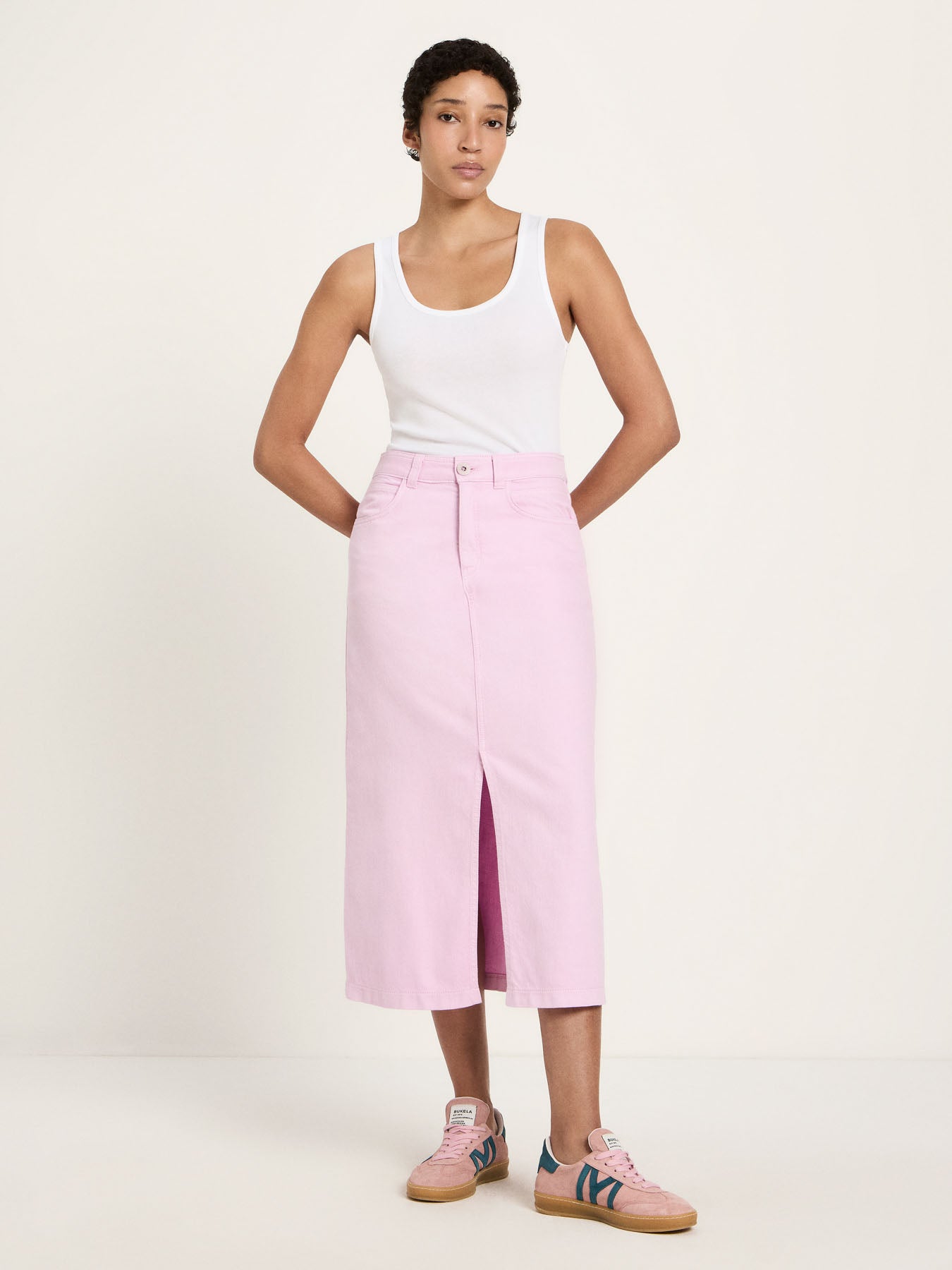 Dieser Rock mit Schlitz aus GOTS-zertifizierter Bio-Baumwolle vereint feminine Eleganz mit moderner Lässigkeit und nachhaltigem Anspruch. Der cleane, zeitlose Schnitt sorgt für eine schmeichelhafte Silhouette, während der dezente Schlitz dem Design Leichtigkeit, Bewegungsfreiheit und eine subtile feminine Note verleiht. Dadurch eignet sich der Rock ideal für warme Tage ebenso wie für stilvolle Übergangs-Outfits.