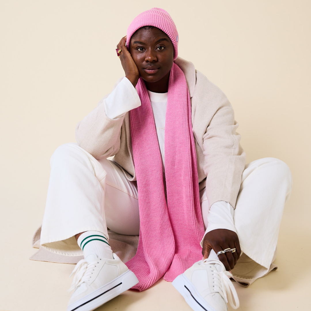 Hergestellt aus hochwertigem italienischem Garn und in Deutschland gefertigt, vereint dieser Schal nachhaltige Qualität mit modernem Design. Das Statement-Label wurde übrigens von unserer Community mitgestaltet – ein echtes Lieblingsstück mit Persönlichkeit.