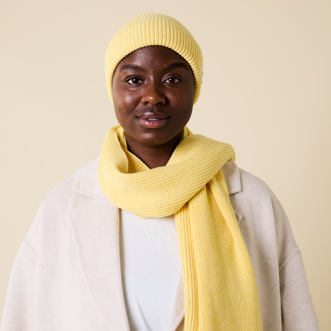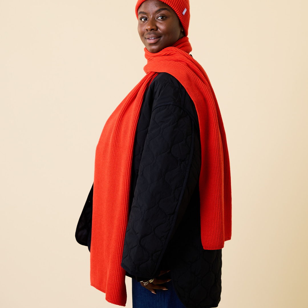 Dieser Schal aus weicher Merinowolle ist nicht nur ein farblicher Hingucker, sondern auch unglaublich angenehm zu tragen. Ob im Set mit der passenden Beanie oder solo – er hält dich warm, weich und stilvoll durch die kalte Jahreszeit.