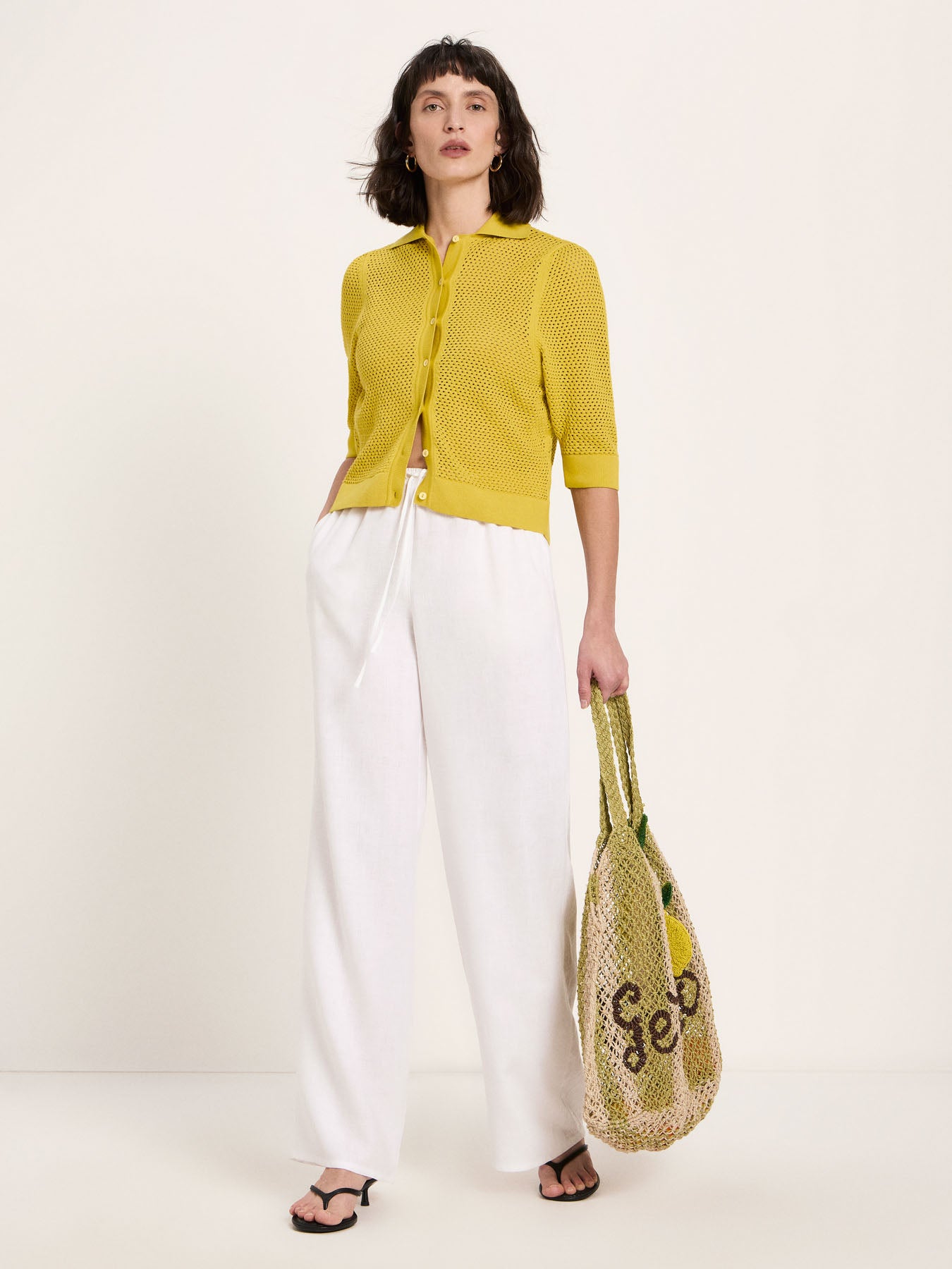 Ob zu Denim, fließenden Hosen oder über einem Kleid kombiniert – diese Strickjacke bringt die entspannte Eleganz eines italienischen Sommers in deinen Alltag und verbindet nachhaltige Materialien mit vielseitigem Stil.
