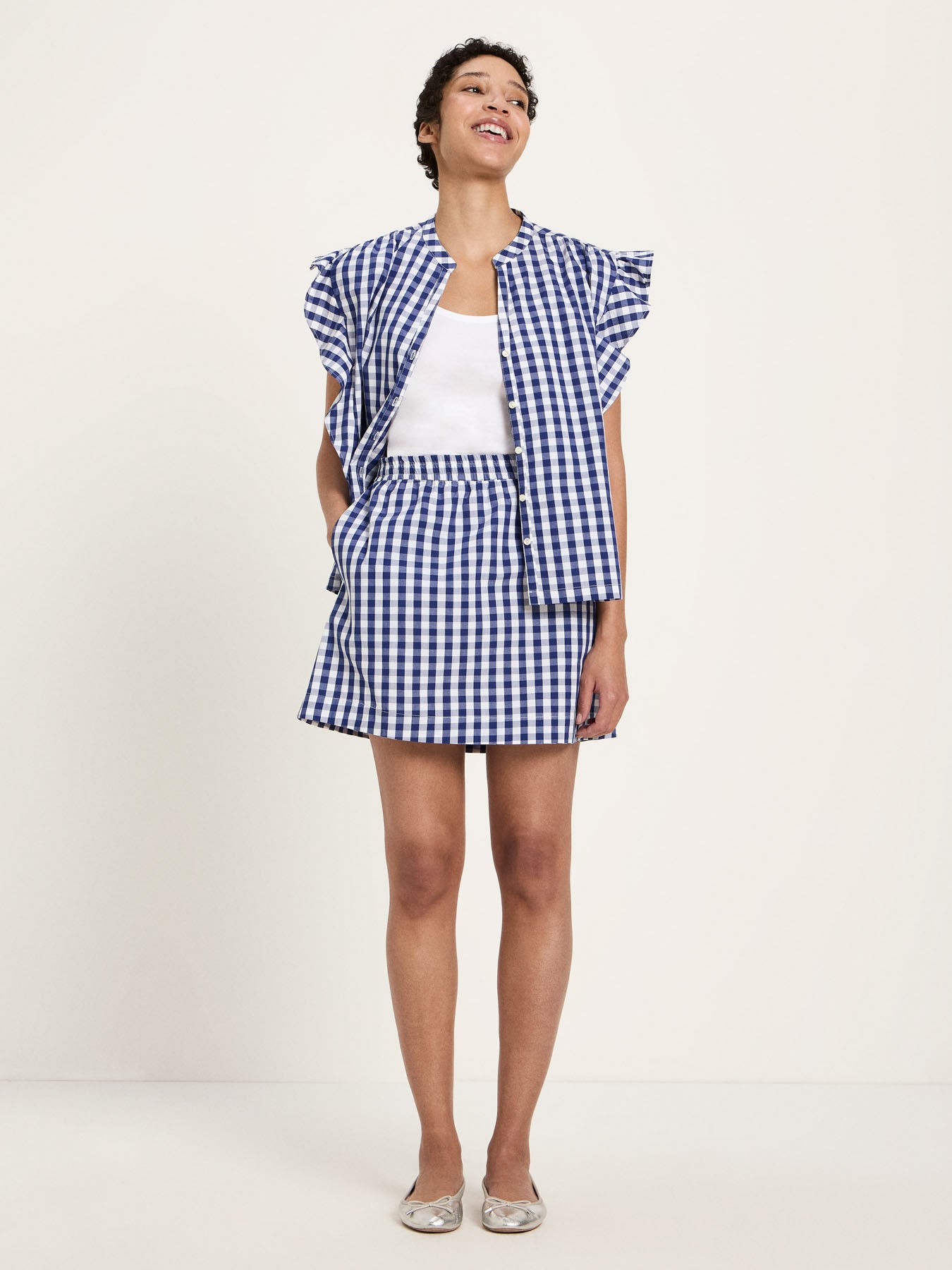 Gefertigt aus GOTS-zertifizierter Bio-Baumwolle überzeugt der Rock durch seine angenehm leichte, atmungsaktive Qualität, die besonders an warmen Tagen für hohen Tragekomfort sorgt. Das charakteristische Vichy-Karo verleiht dem Design eine zeitlose, feminine Ausstrahlung und erinnert an unbeschwerte Sommermomente.